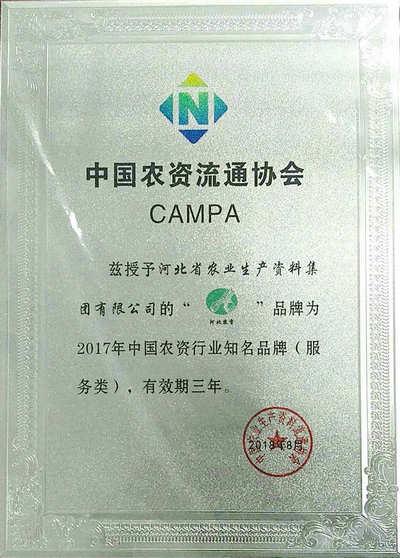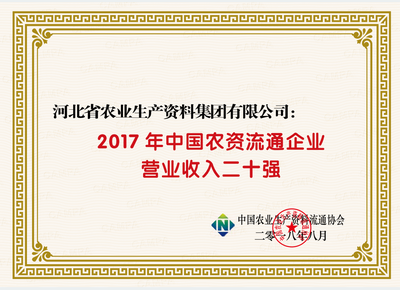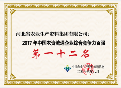 集團(tuán)公司榮獲中國農(nóng)資流通企業(yè)綜合競(jìng)爭(zhēng)力百強(qiáng)、中國農(nóng)資行業(yè)知名品牌