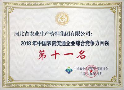 集團(tuán)公司榮獲中國農(nóng)資流通企業(yè)綜合競爭力百強(qiáng)、營業(yè)收入二十強(qiáng)
