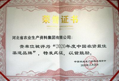 集團(tuán)公司榮獲“2020年度中國農(nóng)資最佳渠道品牌”稱號(hào)