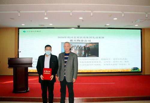 任海(右)為冀興物業(yè)公司頒發(fā)“2020年度先進集體”榮譽證書