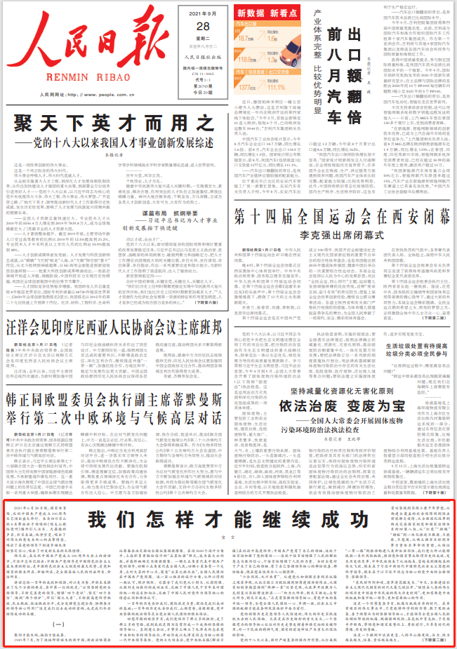 【轉(zhuǎn)發(fā)】人民日報再發(fā)“宣言”:我們怎樣才能繼續(xù)成功