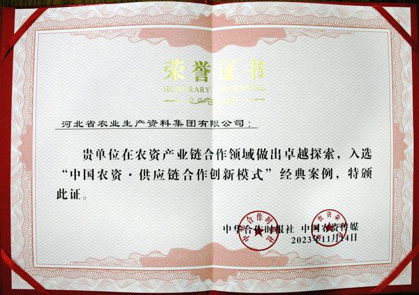 集團公司入選“中國農(nóng)資產(chǎn)業(yè)鏈合作創(chuàng)新模式上榜企業(yè)”榜單