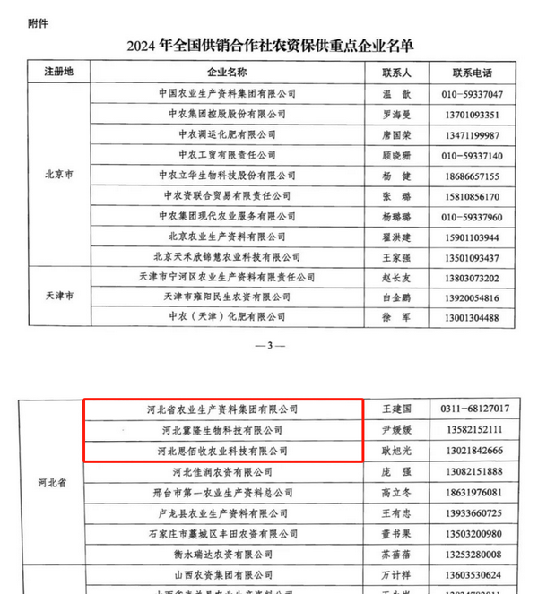 河北省農(nóng)資集團入選2024年全國供銷合作社農(nóng)資保供重點企業(yè)名單