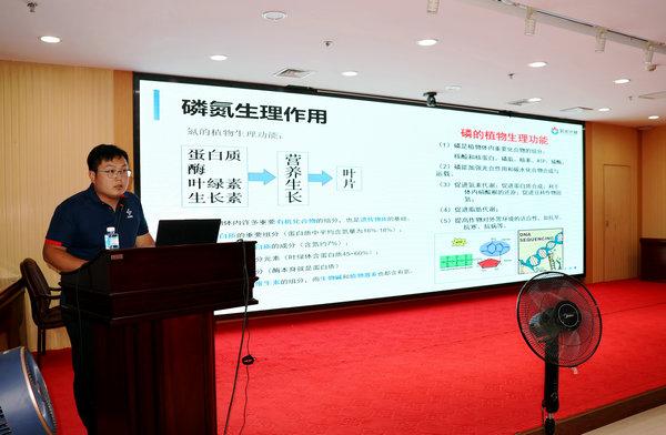 云南云天化華北大區(qū)農(nóng)化技術(shù)專家何滿朝介紹了磷肥的發(fā)展歷程、云天化新品磷肥的特性以及銷售推廣的經(jīng)驗分享。