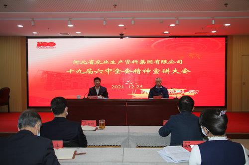 本網(wǎng)訊 2021年12月26日,河北省農(nóng)資集團(tuán)公司在河北農(nóng)資大廈召開黨員干部大會,深入學(xué)習(xí)宣傳貫徹黨的十九屆六中全會精神,由省供銷社監(jiān)事會主任、集團(tuán)公司黨委書記、董事長李平現(xiàn)對全會精神進(jìn)行宣講,集團(tuán)公司黨委副書記任海主持會議。集團(tuán)公司班子成員、各單位負(fù)責(zé)人及全體黨員現(xiàn)場參會,集團(tuán)公司其他人員通過釘釘視頻參會。