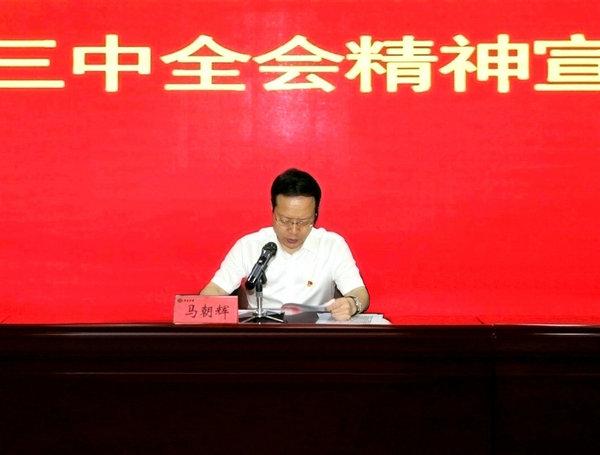 馬朝輝圍繞學(xué)習(xí)貫徹全會精神,從深刻認識全會的重大意義,深入學(xué)習(xí)領(lǐng)會習(xí)近平總書記在黨的二十屆三中全會上的重要講話精神,全面準(zhǔn)確理解全會《決定》提出的進一步全面深化改革重大舉措,全力以赴抓好全會精神貫徹落實等四個方面進行全面宣講,并對《決定》中重要內(nèi)容作解讀。